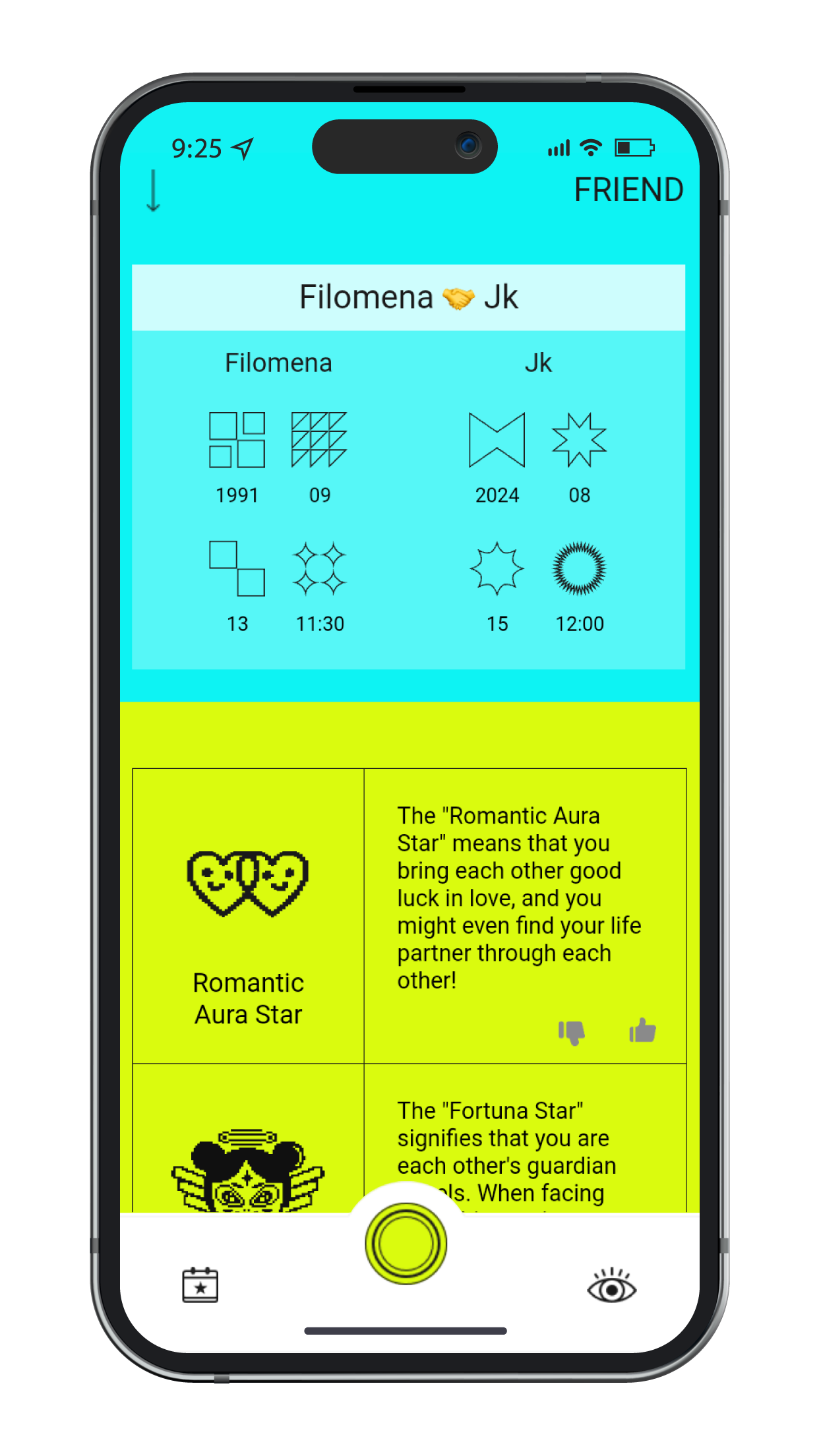 Completing a horizontal row of elements grants a free friendship compatibility reading.